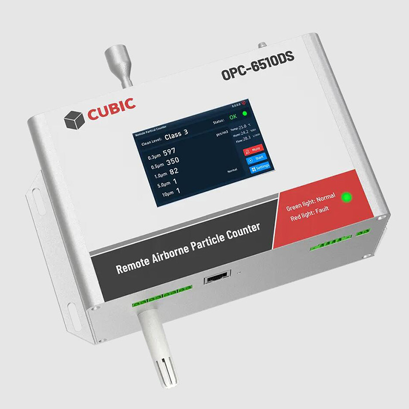 達成するために環境 プロセスモニタリング、Cubicは設計しました2.83LPM粒子カウンターOPC-6303シリーズと28.3LPMパーティクルカウンター OPC-6510シリーズ、粒子レベルを監視するためのコア光散乱技術に基づいており、また採用されています壁マウントCO2SセンサーとCオントロラー モニターへのAM6108B一時的Eratureと湿度 FPD製造クリーンルームで。